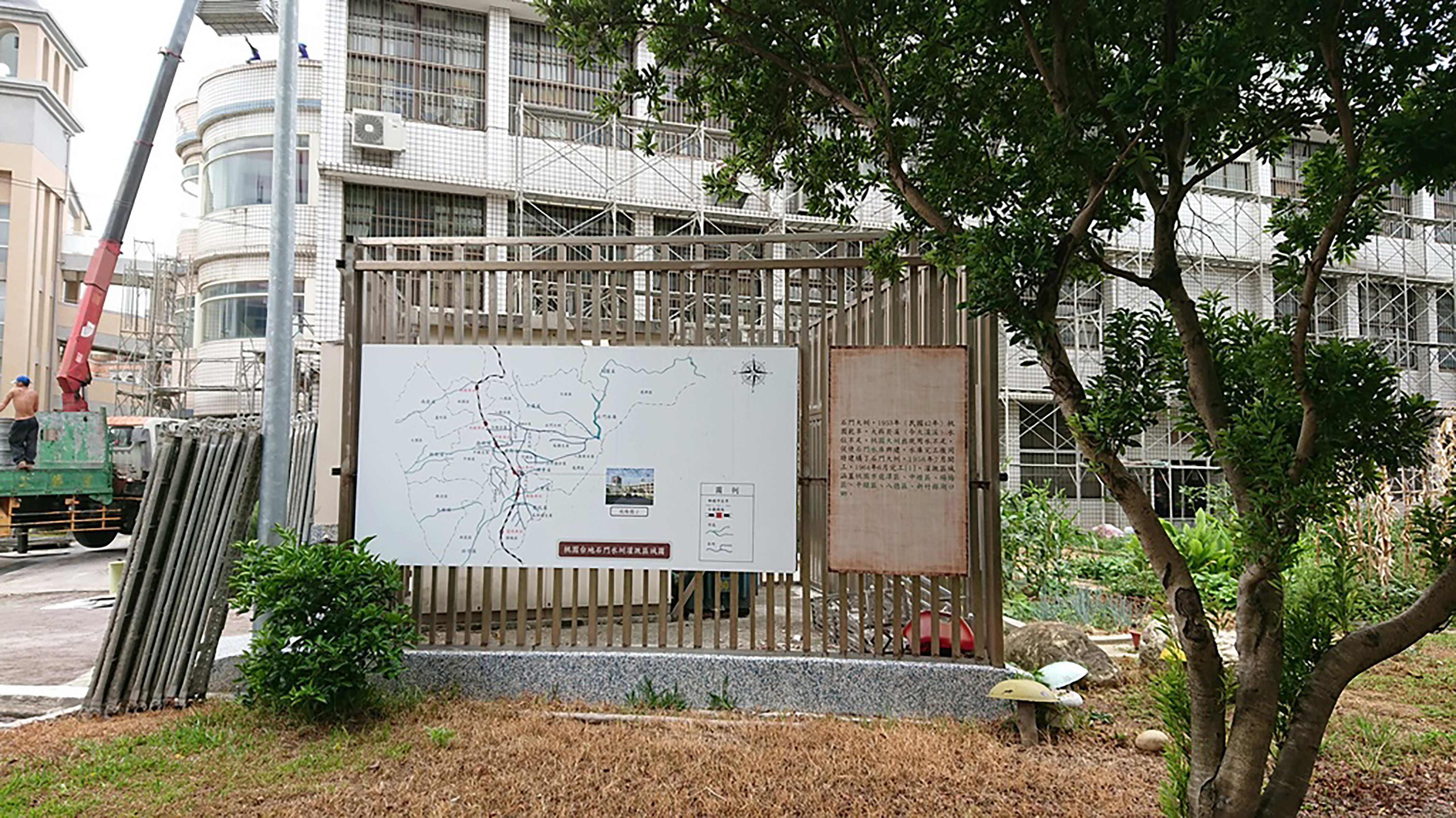 從臺灣堡圖紋理瞭解到學校從古至今的地緣發展史,包含校門口花圃側邊的早期聚落「頭重溪庄」,與頭亭溪的歷史遺跡、劉銘傳時期鐵路規劃的重要地位。學校原先提案為利用與鄰近基地的高低落差,鋪設成適合孩子遊玩的綠草地,在欖仁樹林建立閱讀空間以及改善新蓋活動中心的噪音裝置。然而輔導委員在校園進行場勘,並查閱地景歷史之後,邀請校方進一步深入探索文化地景歷史,並重新思索教育的意義,最後鎖定靠近區公所畸零地的校園角落,作為打造綠帶與水的廊帶教育現場。