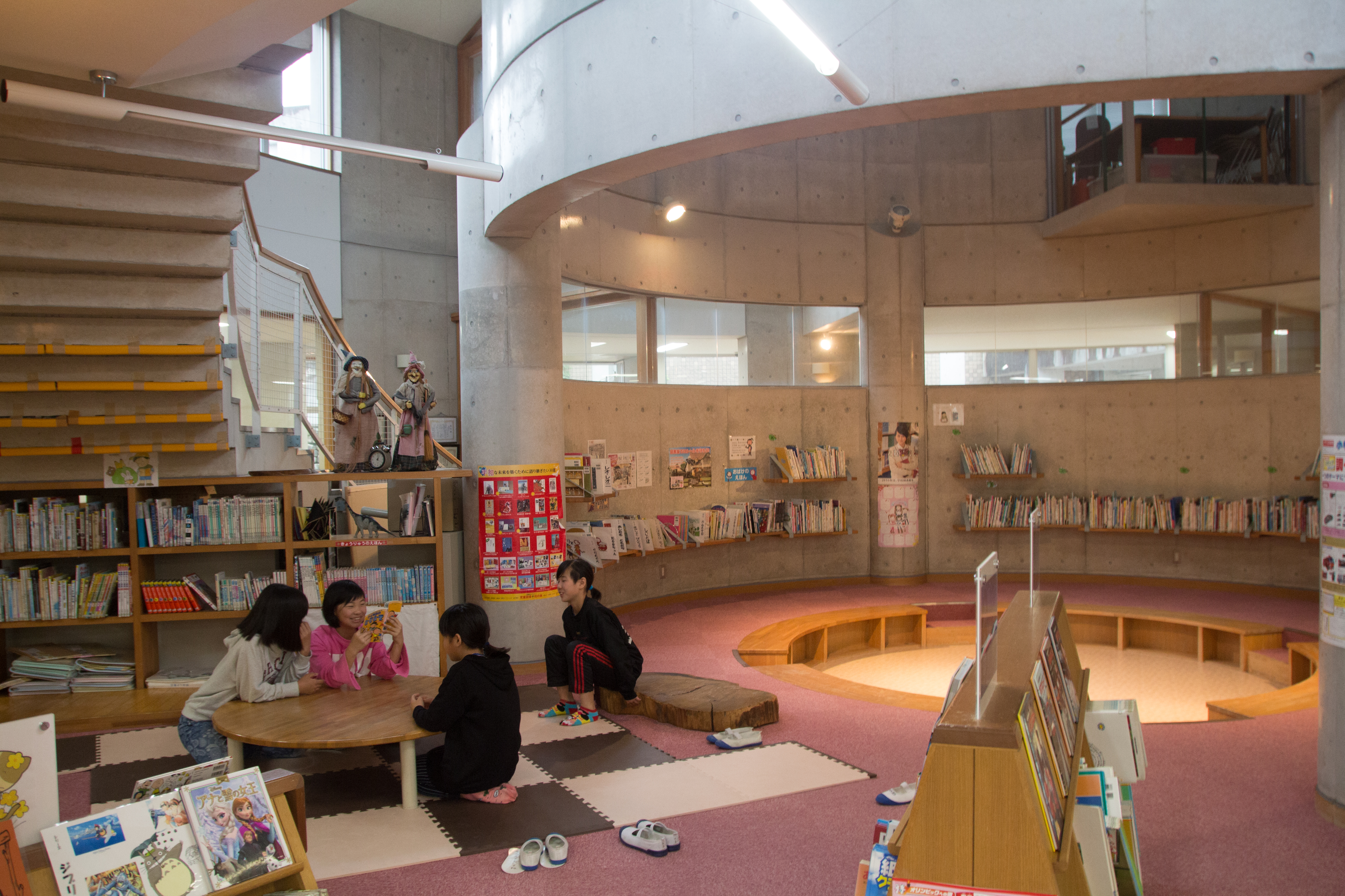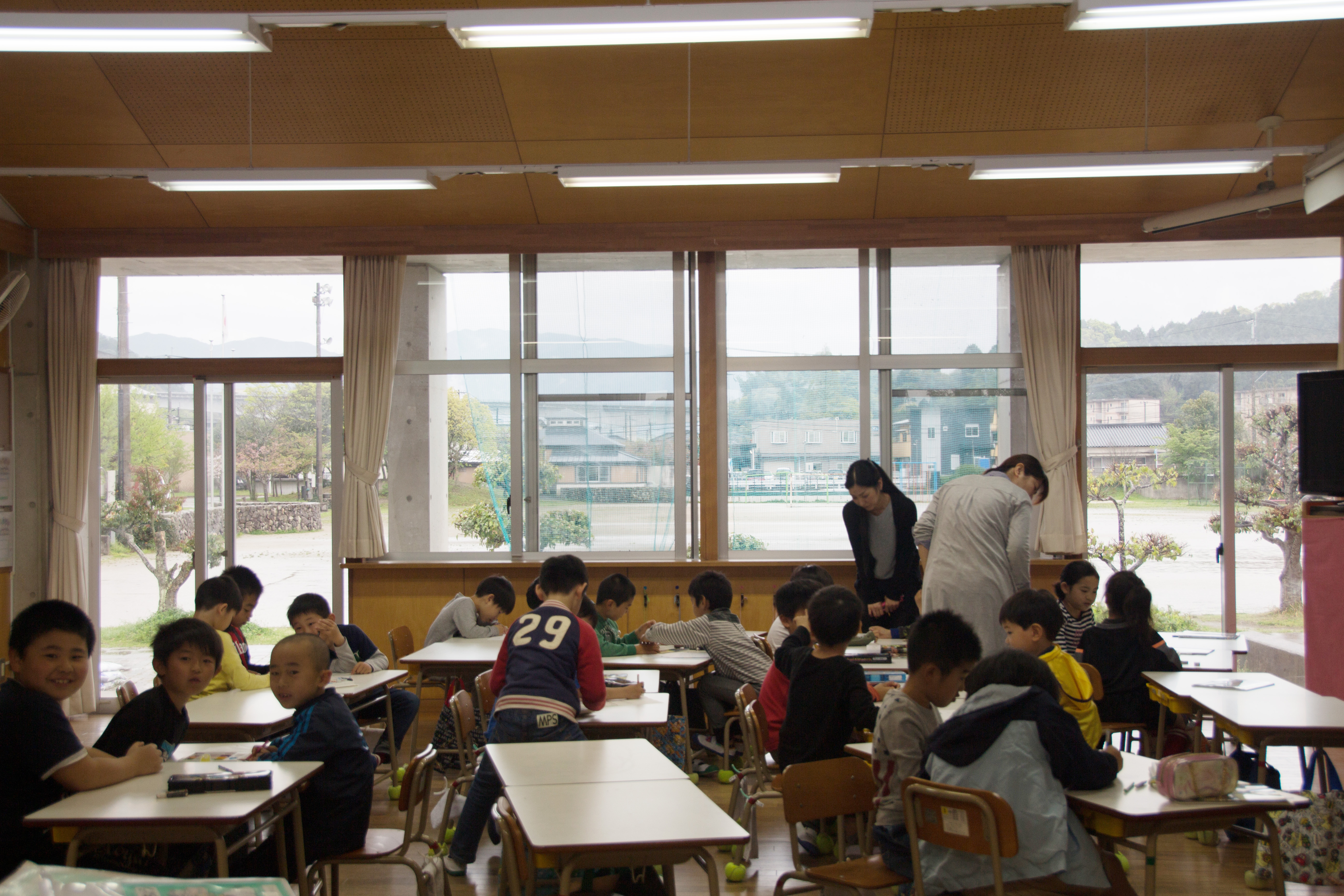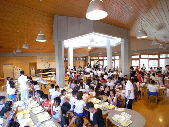 下山田小學新校舍是由鮎川透建築師所設計,採用符合當地的建築風格的質材,大量的在空間中使用穿透式設計,讓各個空間可以互相穿透,同時又可看內看外,讓社區居民可以看到孩子們的學習,孩童也可以環顧四周。